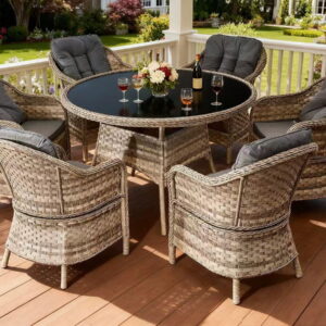 The MODERNO GRANDE dining set is the essence of modern design and innovation in outdoor and indoor furniture. Offering a unique blend of cutting-edge design and functionality, this set becomes the heart of any space. The armchairs and table from this collection are crafted from high-quality synthetic rattan, ensuring absolute resistance to harmful weather conditions,…