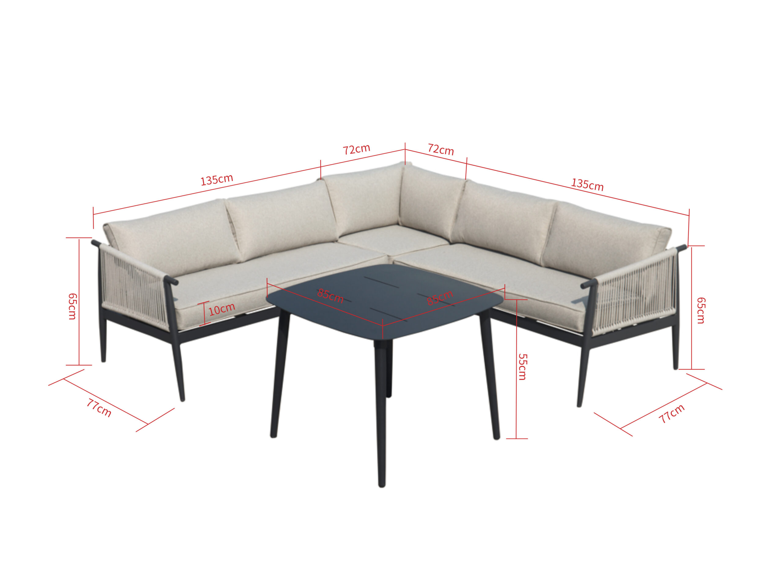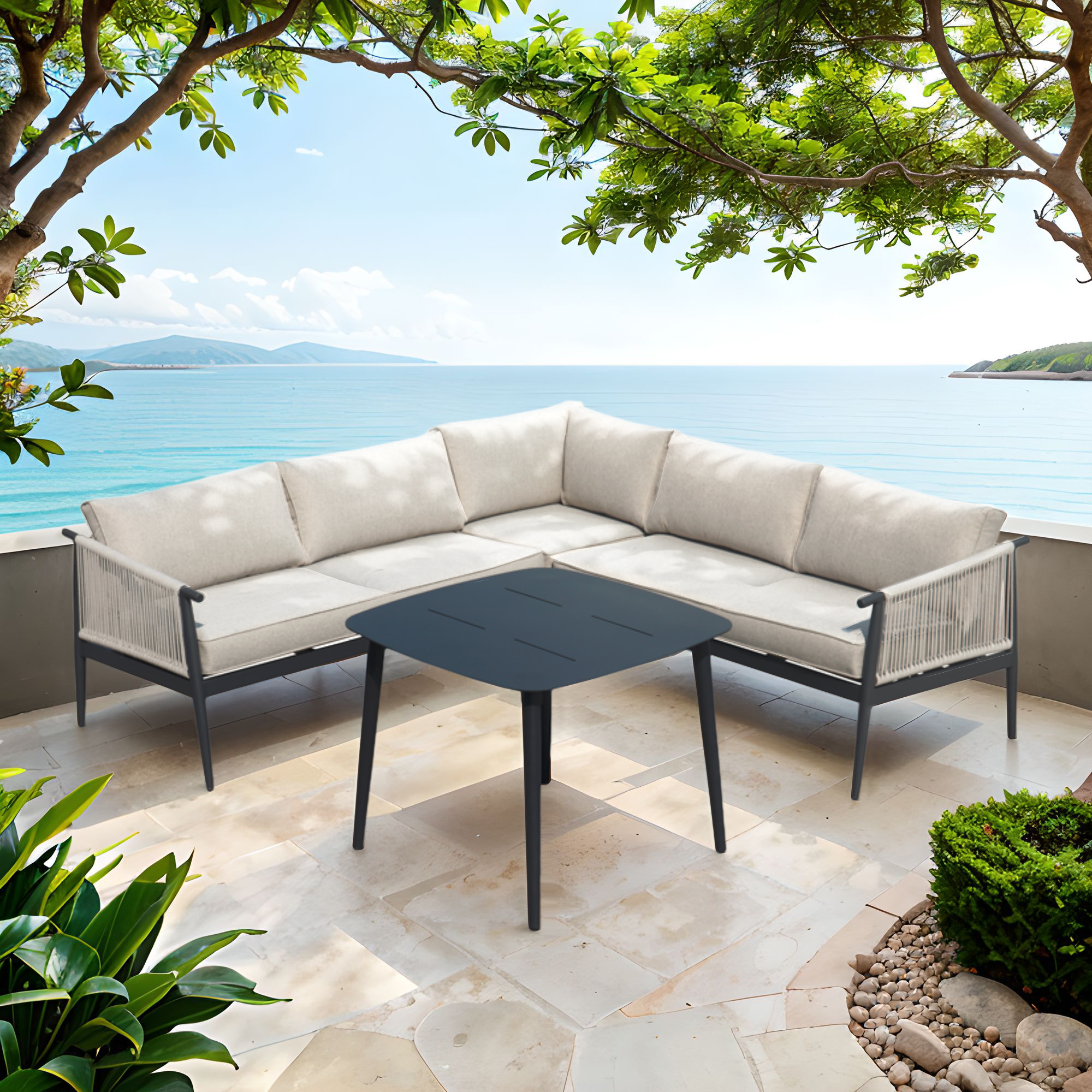 Patio furniture set AURORA, gray aluminum frame, comfortable cushions
