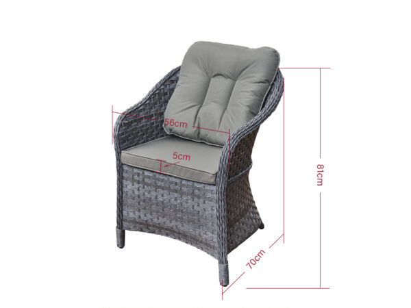 Gray pillow included in the price of the chair (1 seat and 1 backrest). The pillow has a removable zippered cover, made of waterproof material (100% polyester), which can be washed at low temperatures. The pillowcase is made of high-quality fabric coated with Teflon, which protects it against moisture. The pillow filling is made of high-quality upholstery foam (medium hard – T25), which prevents deformation. Seat cushion thickness: 5 cm.