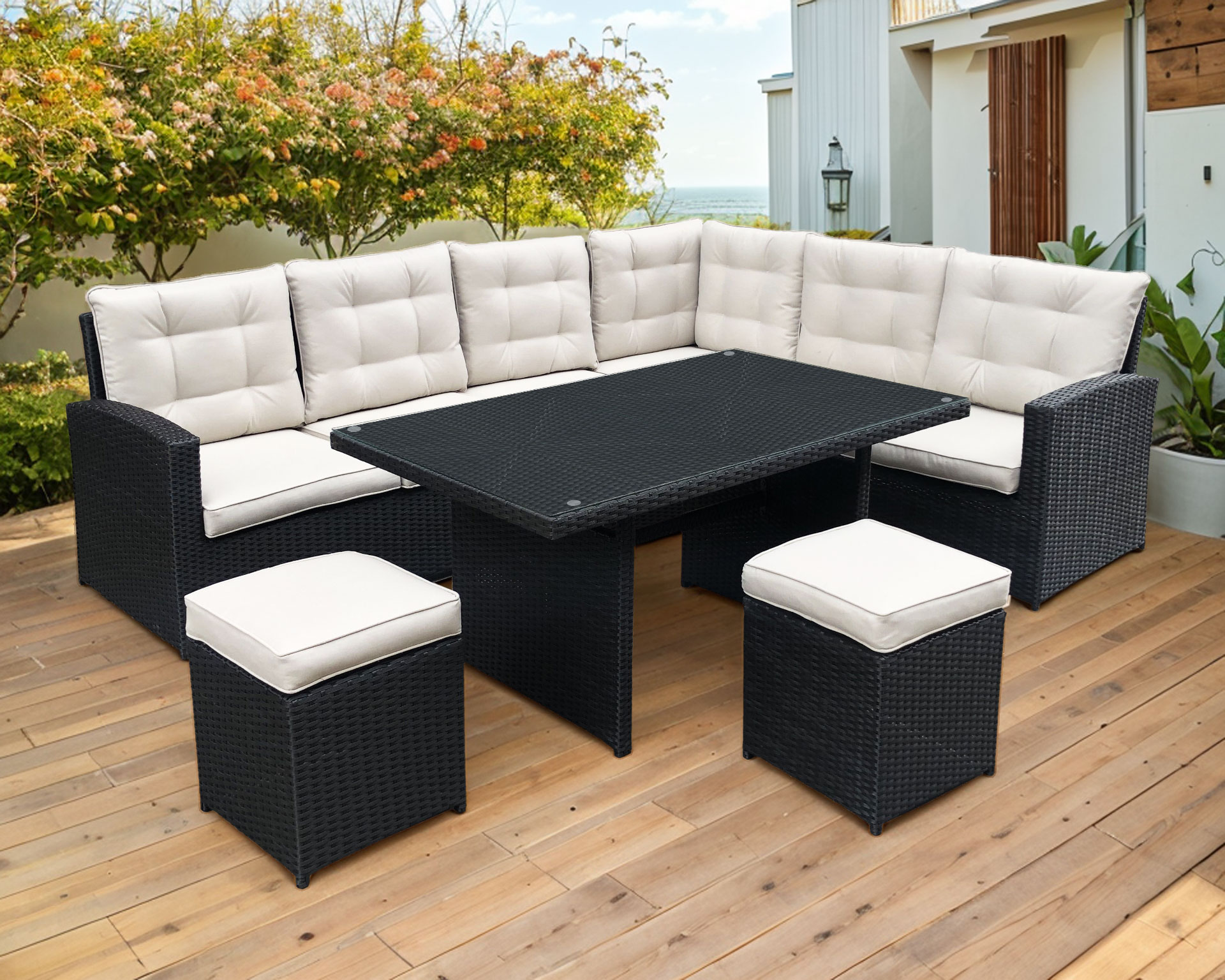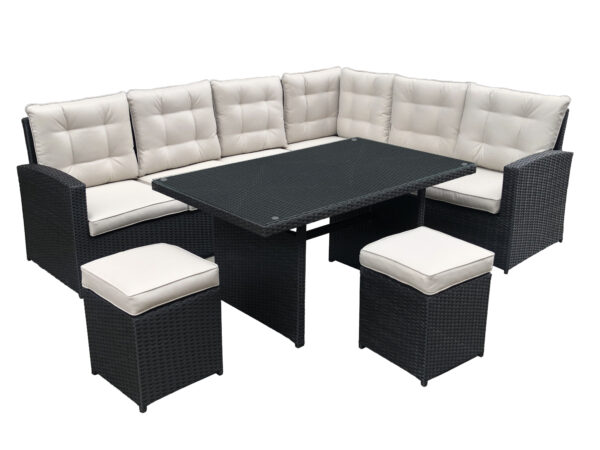 Large technorattan garden corner BOSCO black